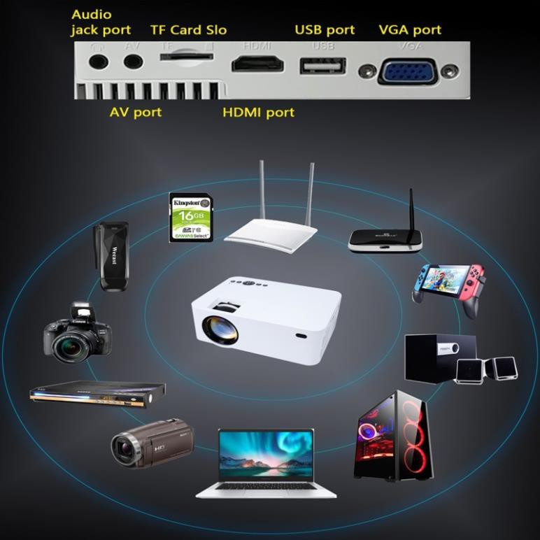 -Kết nối với điện thoại, ipad, máy tính, laptop, đầu DVD, thẻ micro SD, USB xem trực tiếp...