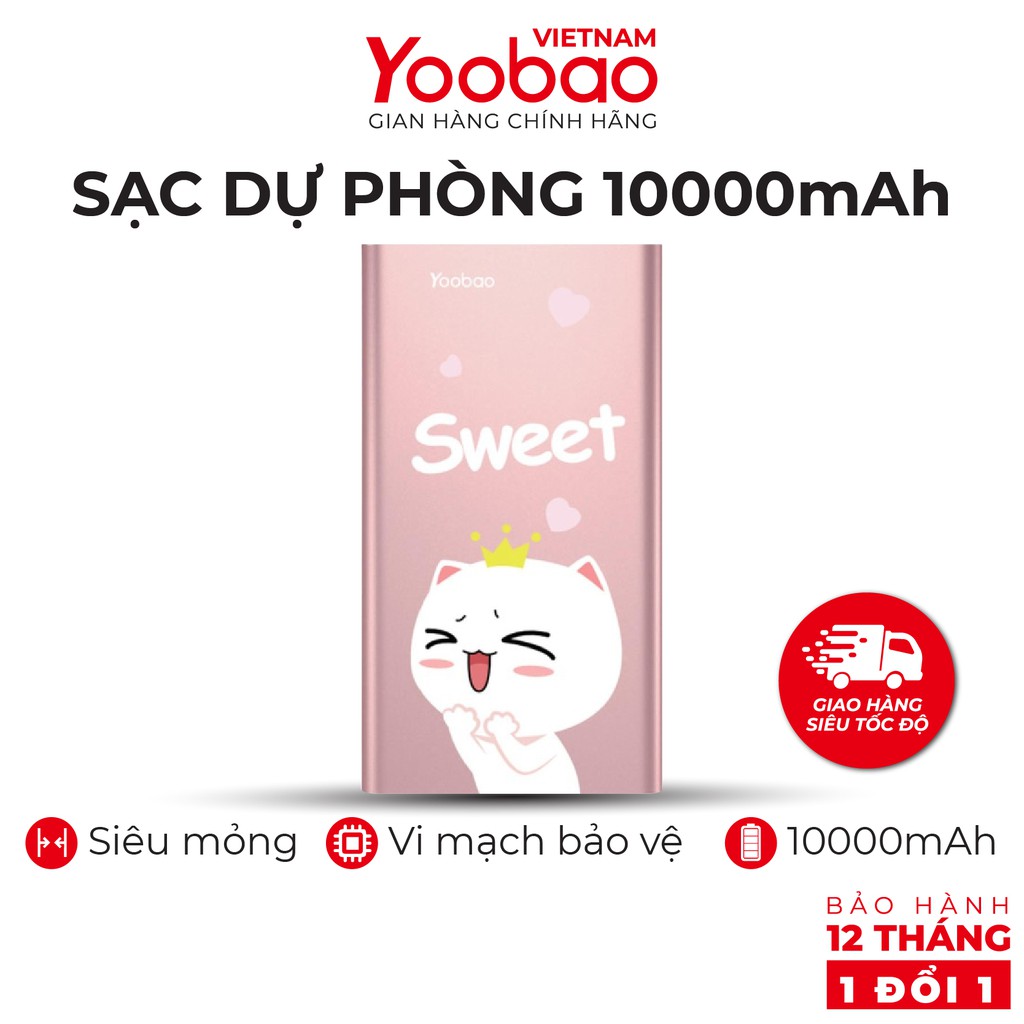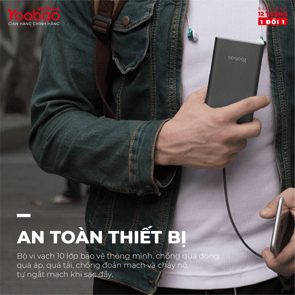 Sạc dự phòng 10000mAh Yoobao A1 Polymer Slim - Hàng chính hãng - Bảo hành 12 tháng 1 đổi 1