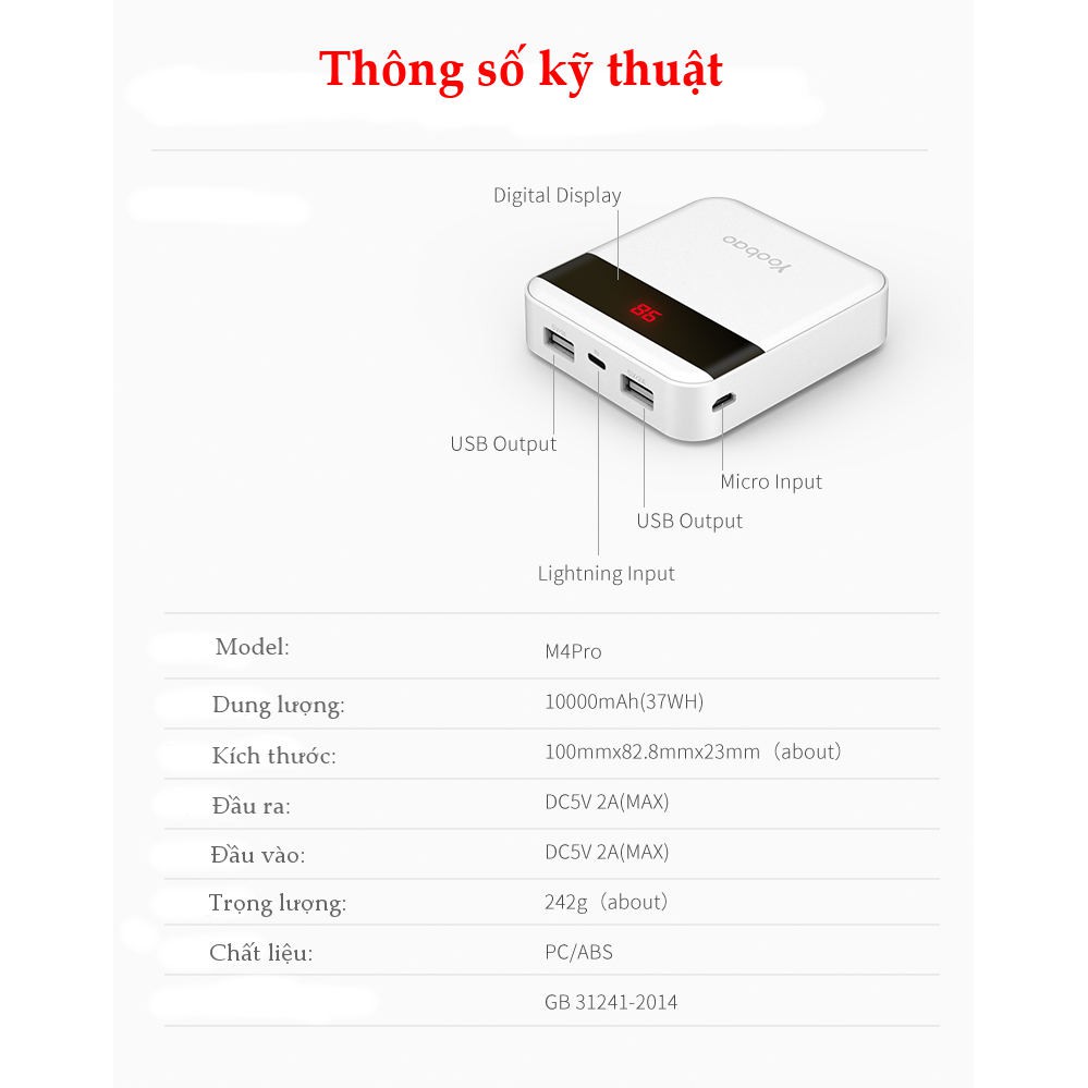 Thương hiệu: Yoobao | Xem thêm các sản phẩm Pin sạc dự phòng di động của YoobaoMô tả ngắn