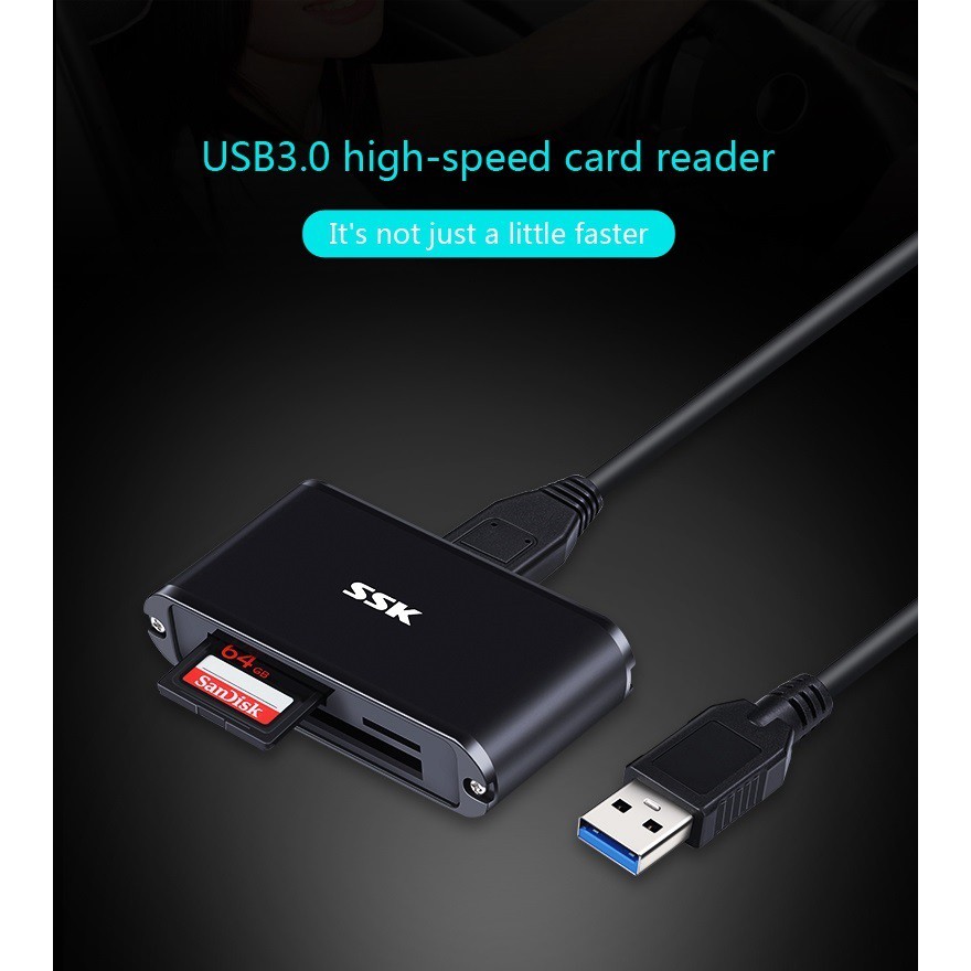 Đầu đọc thẻ nhớ đa năng SSK SCRM630 USB 3.0 - đọc thẻ TF/SD/CF (Đen)- Thương hiệu: SSK