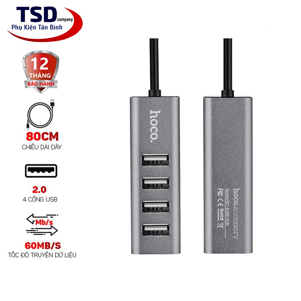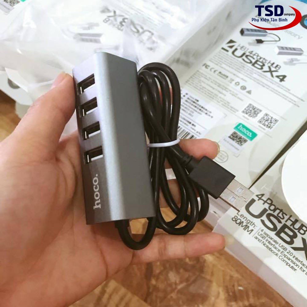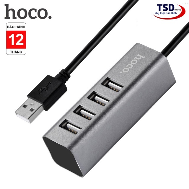 - Hub USB Hoco HB1 với 4 cổng USB 2.0 và một đầu USB để kết nối với cổng USB trên máy tính. Hoco HB1 hỗ trợ chia cổng usb trên máy tính thành 4 cổng usb trên hub. Ngoài việc hỗ trợ truyền dữ liệu thì Hub còn giúp bạn kết nối với những thiết bị sử dụng cổng USB khác. Như quạt tản nhiệt, USB, chuột, lót chuột rgp, fan mini, đầu đọc thẻ nhớ…