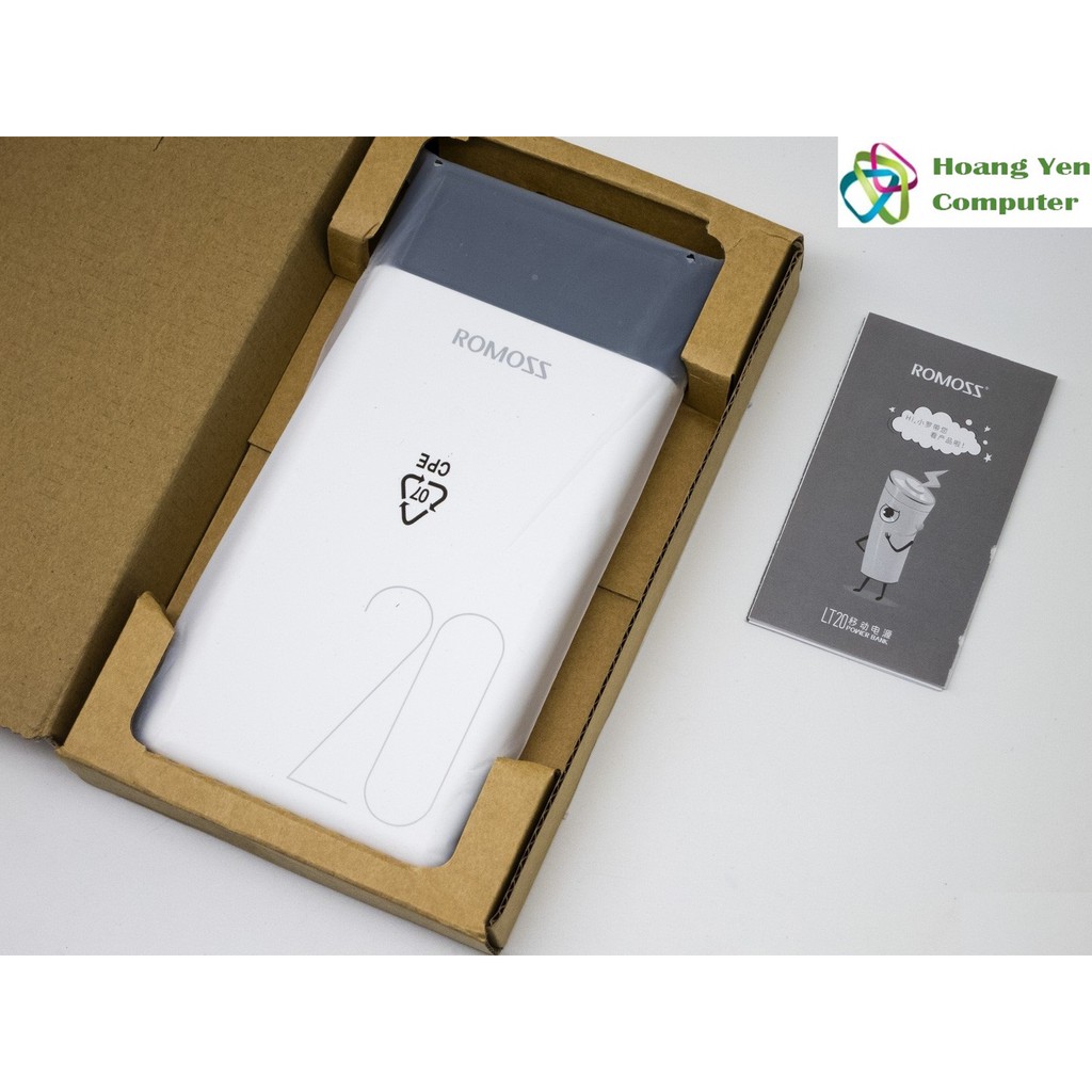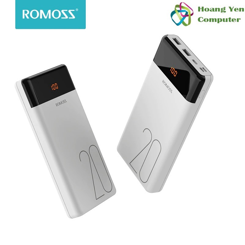 [CHÍNH HÃNG] Sạc Sự Phòng Romoss LT20 20000mAh Màn Hình Led, 3 Cổng Sạc Vào - BH 1 Năm - Hoàng Yến Computer