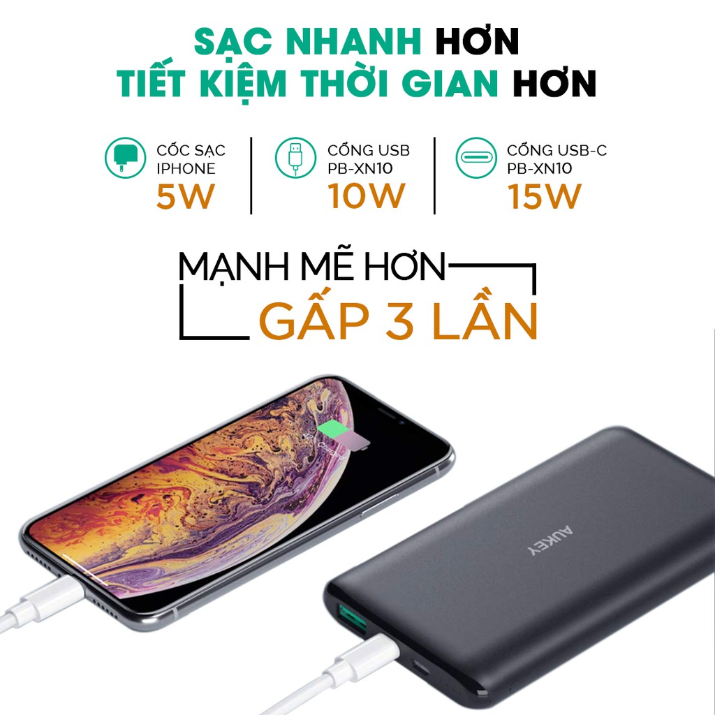 Giới thiệu Pin Sạc Dự Phòng 5000mAh Aukey PB-XN5, AiPower, Sạc Type C 15W, USB 12W - Hàng Chính Hãng
