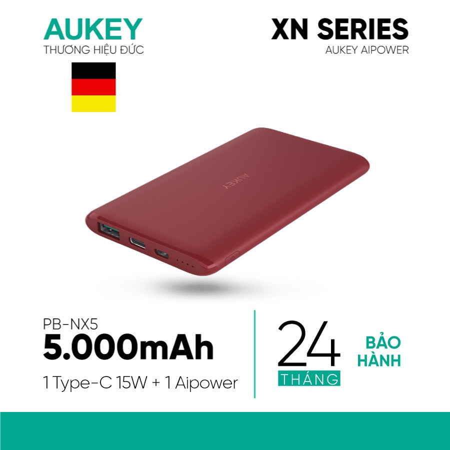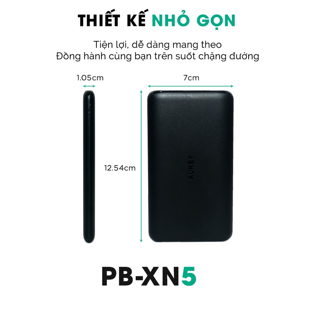 SẠC DỰ PHÒNG 5.000 MAH AUKEY PB-XN5Siêu Mỏng, Nhỏ Gọn, Sạc Type C Công Suất 15W