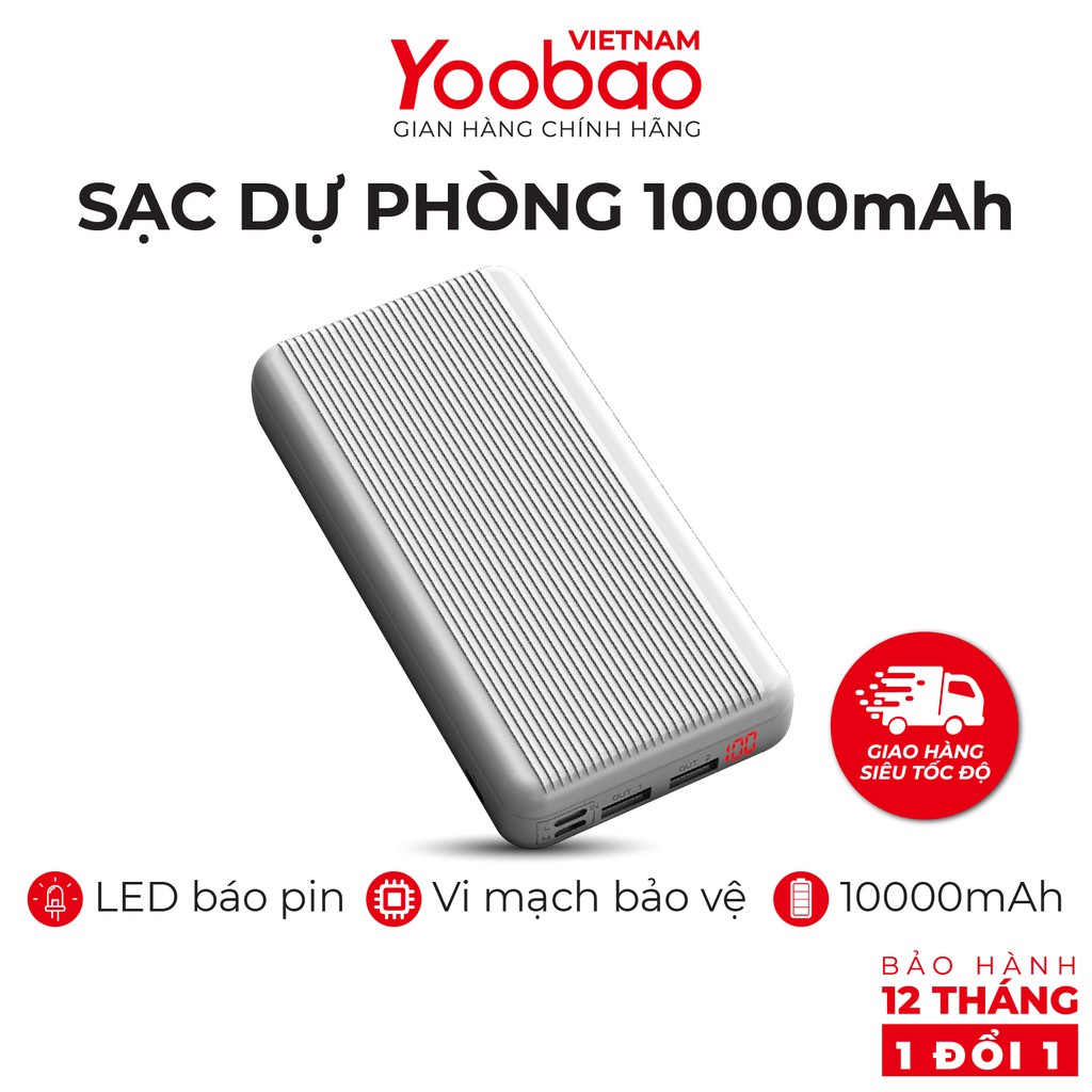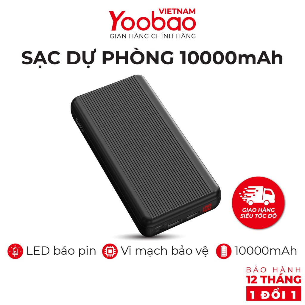 Điện Thoại & Phụ Kiện > Pin sạc dự phòng > 5000 - 10000mAh || Pin Sạc dự phòng YOOBAO P10D 10000mAh Slim; Ba đầu vào/ Hai đầu ra/ LED - Chính HãngCòn hàng