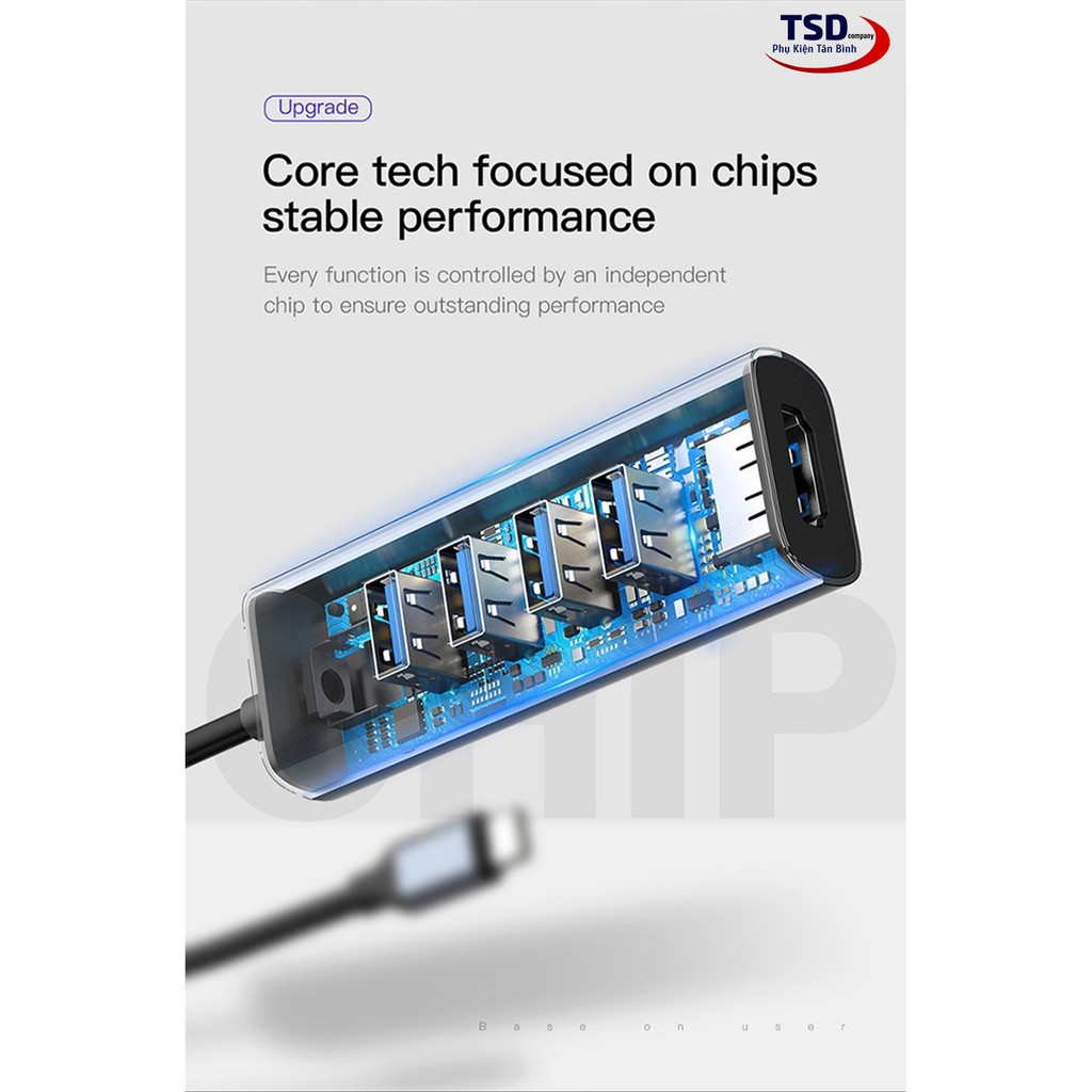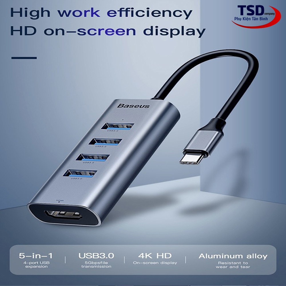 - Được tích hợp chip xử lý hình ảnh tốc độ cao , HUB chuyển Baseus Enjoy Series hỗ trợ xuất hình ảnh độ phân giải 4K - 60Hz . Sản phảm còn được tích hợp 4 cổng USB 3.0 tốc độ cao , cho phép mở rộng cổng giao tiếp. Người sử dụng không phải lo lắng thiếu cổng kết nối nữa . Cổng USB 3.0 có tốc độ truyền dữ liệu lên đến 5Gbps , tương thích với hầu hết các thiết bị ngoại vi giao tiếp qua cổng USB 2.0 và 3.0 (như chuột, bàn phím, thiết bị lưu trữ,...)