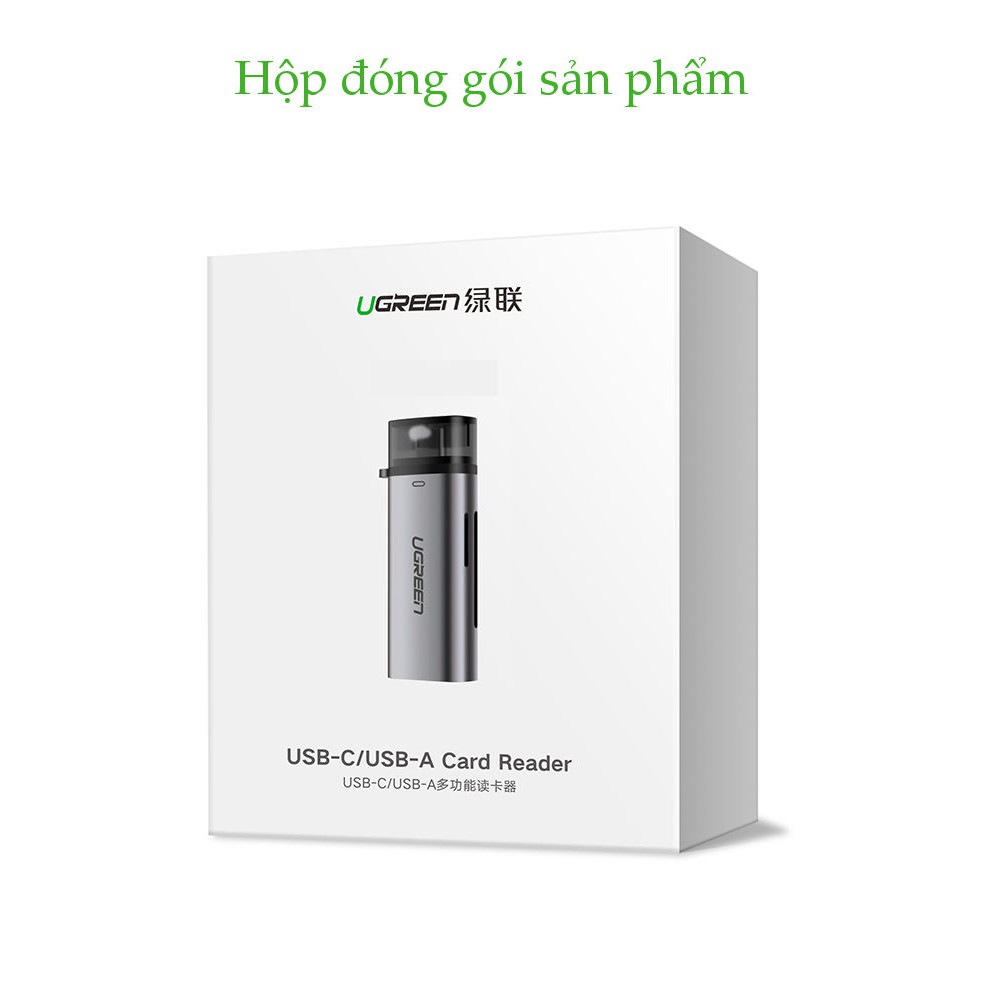 Đầu đọc thẻ USB type C với 2 khe thẻ cắm SD và OTG UGREEN CM184 CM185 - Hàng phân phối chính hãng - Bảo hành 18 tháng