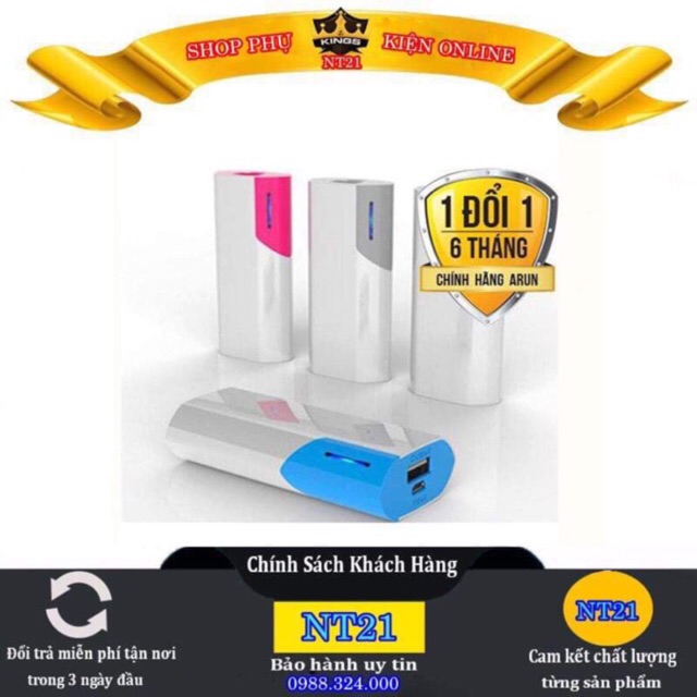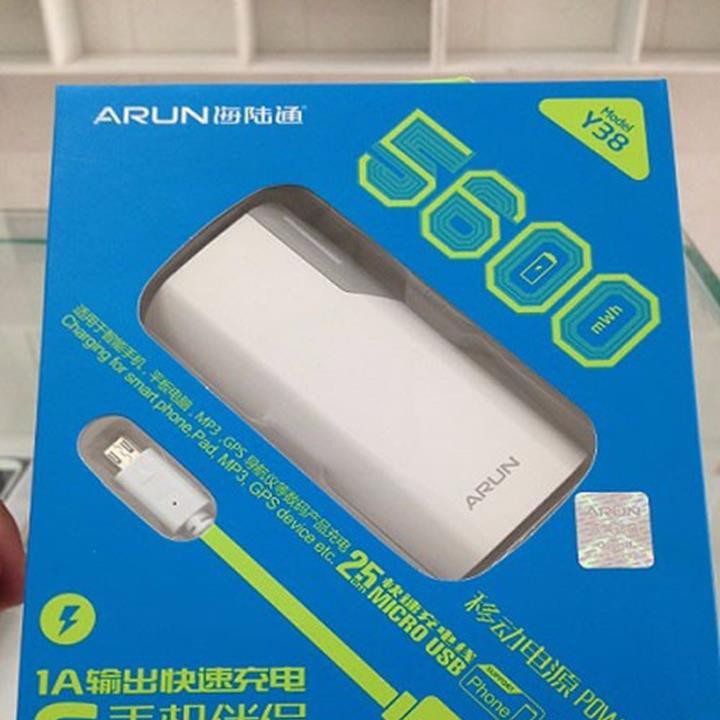 - Pinsạc dự phòng Arun 5600mAh tiện lợi sẽ giúp sạc nhanh chóng điện thoại của bạn mọi lúc mọi nơi với các thao tác đơn giản. Đây là thiết bị không thể thiếu trong các chuyến du lịch, cũng như những nơi không có nguồn điện