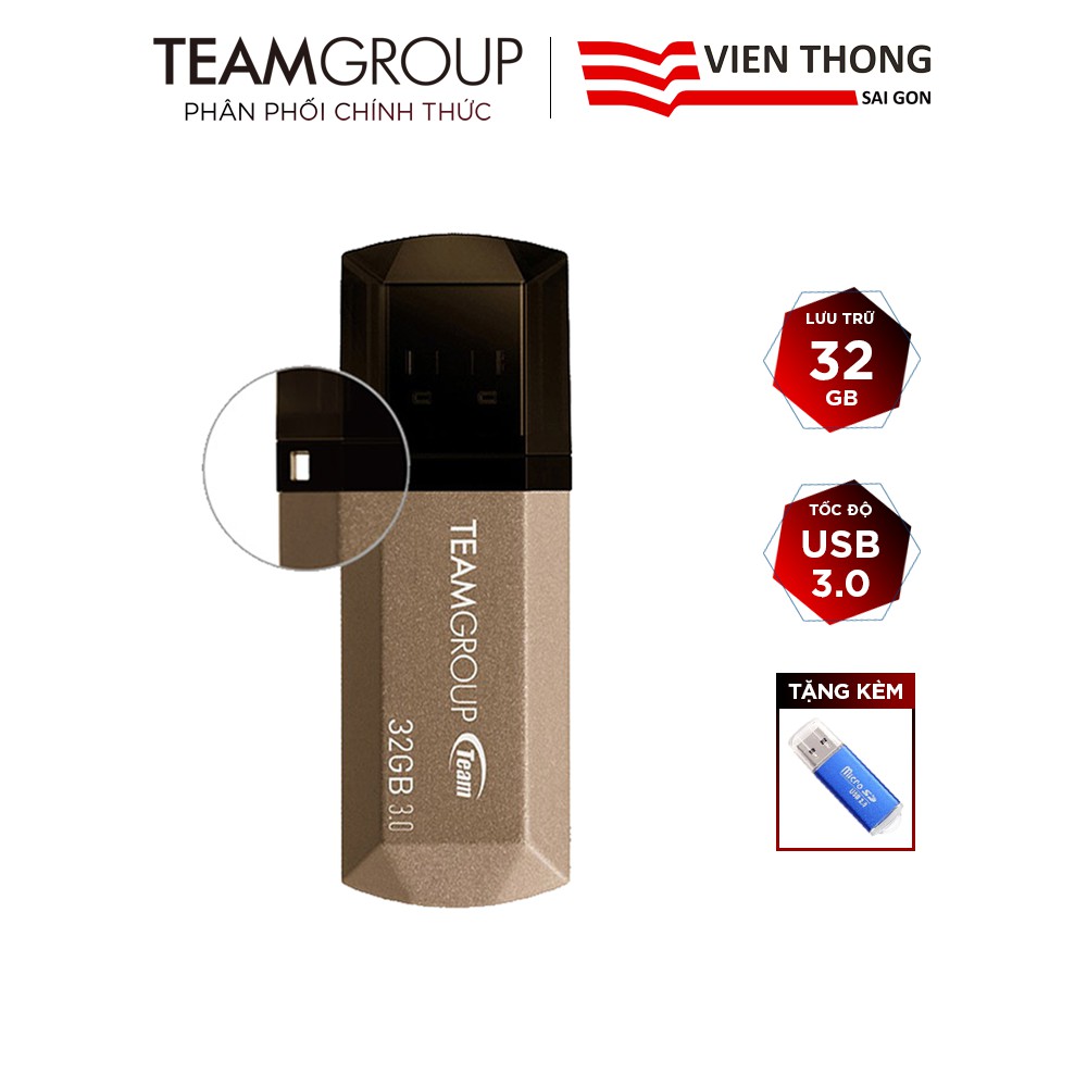 USB 3.0 Team Group C155 32GB tốc độ cao tặng đầu đọc thẻ - Hãng phân phối chính thức