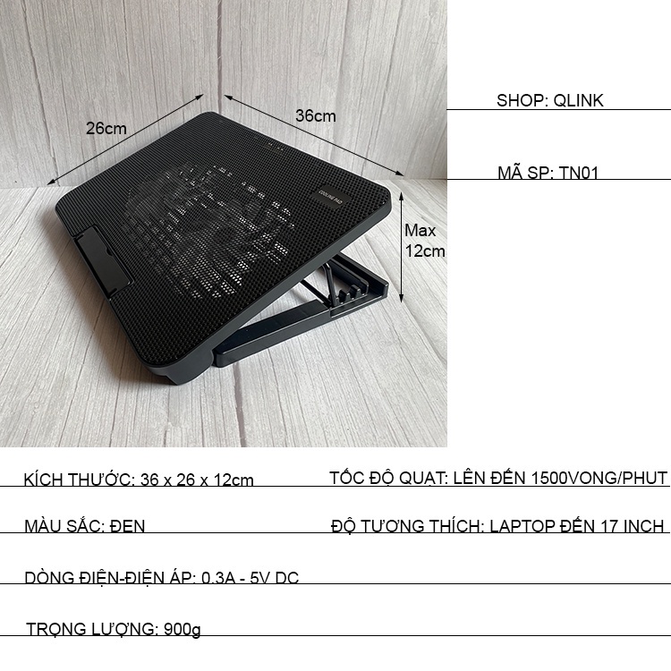 Giới thiệu ĐẾ TẢN NHIỆT LAPTOP N99 Dùng Cho Laptop 15.6 Inch Trở xuống - 1FAN/2FAN, Đế Nâng 45 Độ