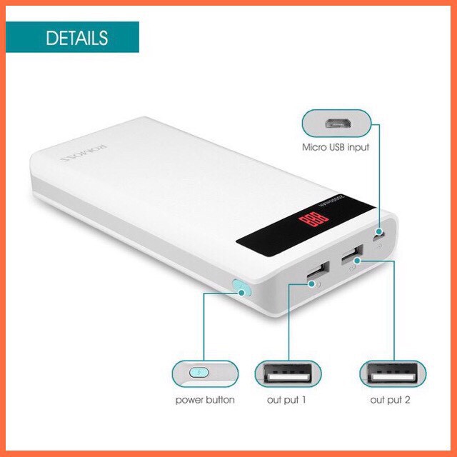 – Pin sạc dự phòng 6P 20.000mAh xuất ra 2 cổng sạc 1A và 2.1A dùng cho cả Smartphone, Ipad, Ip, máy tính bảng