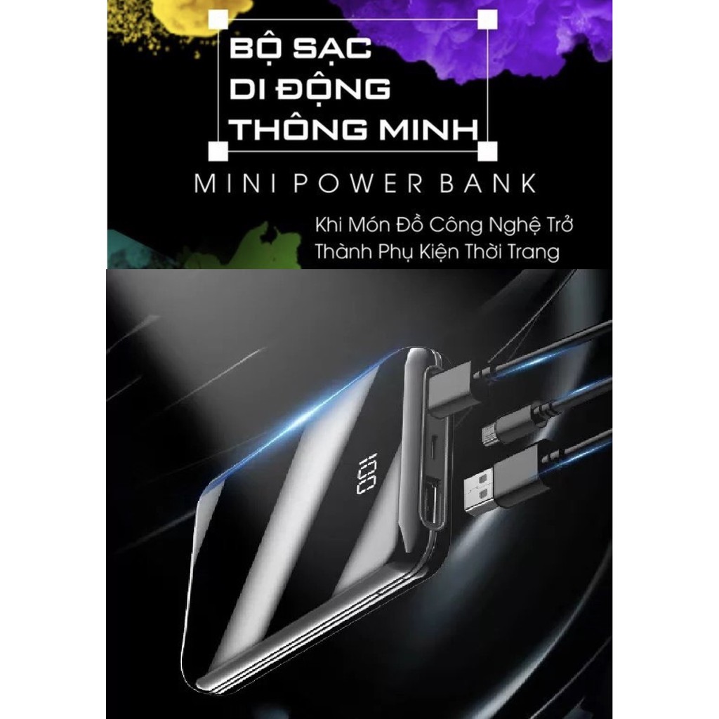Sạc Dự Phòng MINI M10 10.000mAh tráng gương 2 mặt - 2 cổng đầu ra sạc cùng lúc 2 thiết bị - Tặng túi chống sốc