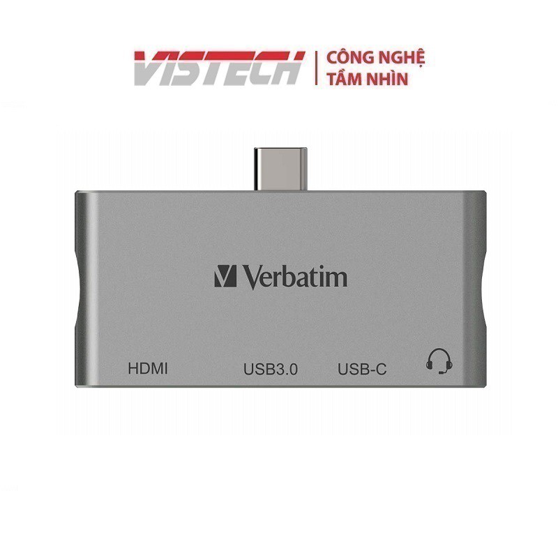 Bộ chia Verbatim TypeC ra HDMI, USB 3.0, Type C PD, 3.5 Aux ( Xám)
