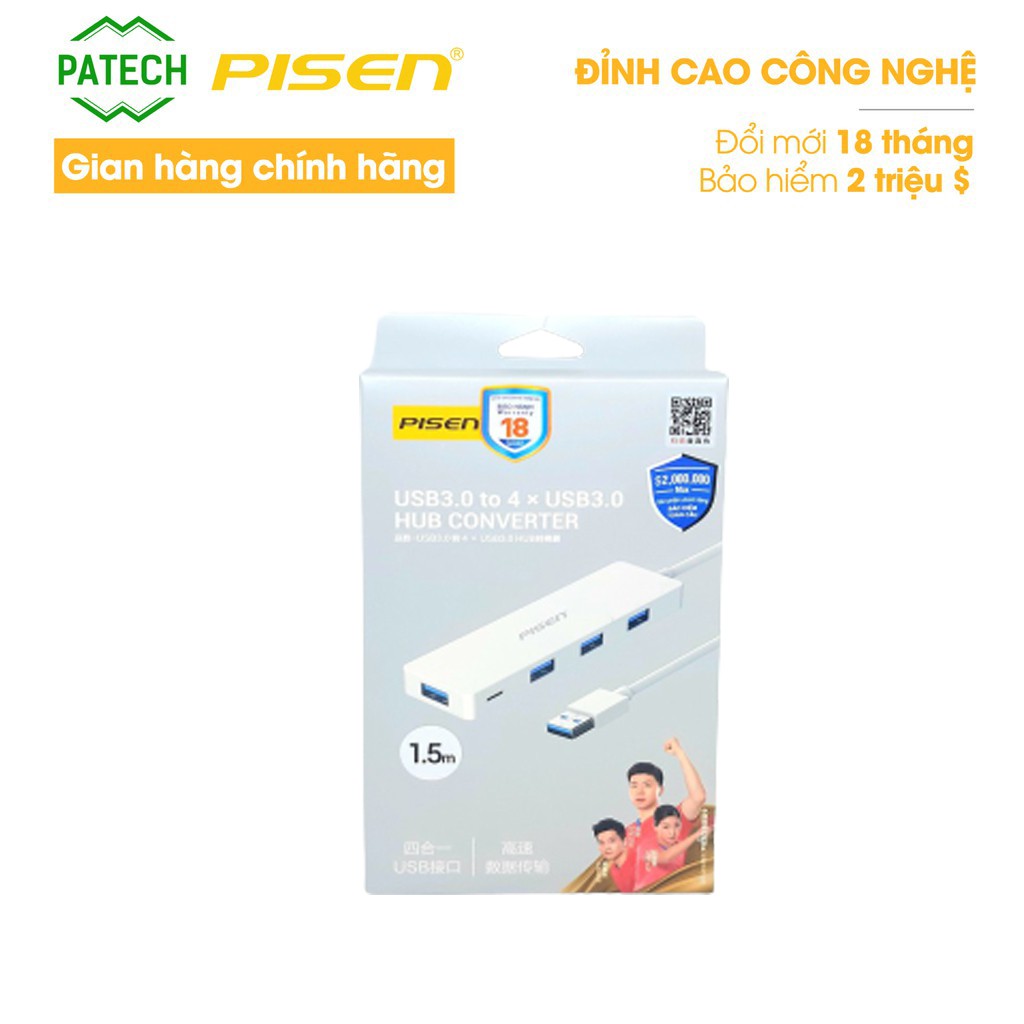 Giới thiệu [Mã BMLTA50 giảm 10% đơn 99K] Bộ chuyển đổi Pisen Hub USB 3.0 1.5m (Từ 1 cổng USB ra 4 cổng USB ) - Hàng chính hãng