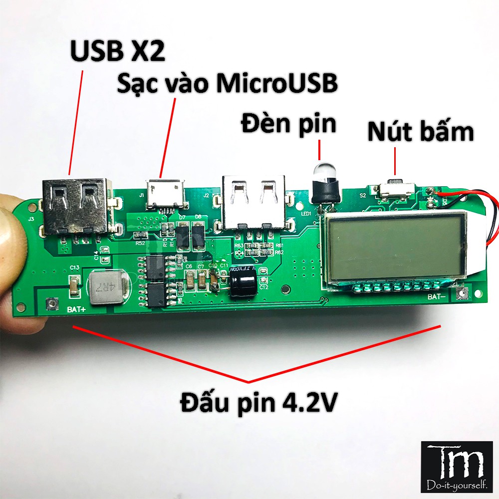 ➡ Mạch có LCD hiển thị dung lượng còn lại của pin(phải sạc-xả vài lần mới báo đúng nhé)