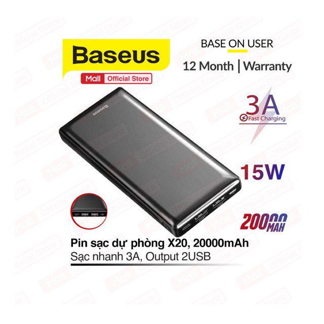 Pin sạc dự phòng X20 Mini JA.Thương hiệu: lBaseus chính hãng, được bảo hành.