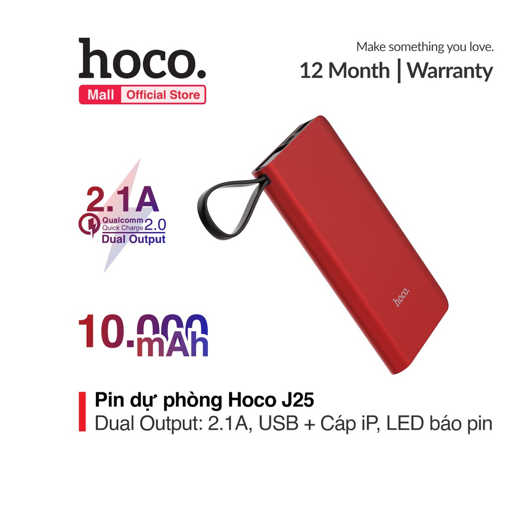 Giới thiệu Pin sạc dự phòng Hoco J25 10000mah tích hợp cáp lightning
