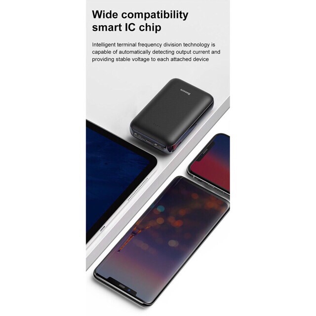 - Dược tích hợp chíp xử lý nguồn thế hệ mới với cơ chế bảo vệ thông minh . Pin dự phòng siêu nhỏ Baseus Mini JA Power Bank 10000mAh cho mức điện áp sử dụng ổn định, đảm bảo an toàn cho thiết bị và người sử dụng .