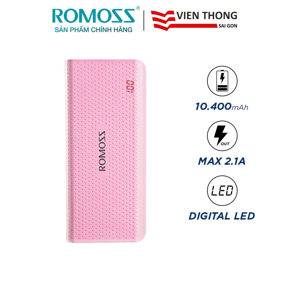 Điện Thoại & Phụ Kiện > Pin sạc dự phòng > 5000 - 10000mAh || Pin sạc dự phòng Romoss Sense 4 LED 10.400mAh nhỏ gọn hiển thị màn hình LEDCòn hàng