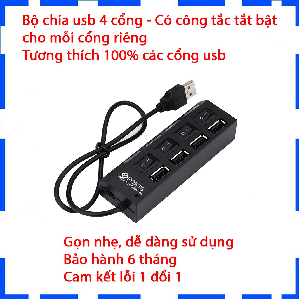 Máy tính & Laptop > Phụ Kiện Máy Tính > Bộ chia cổng USB & Đọc thẻ nhớ || Cổng chia USB 4 cổng - Màu đen - Có công tắc - Bảo hành 6 thángCòn hàng