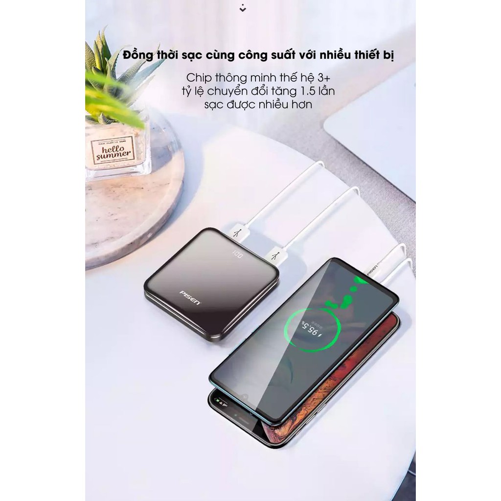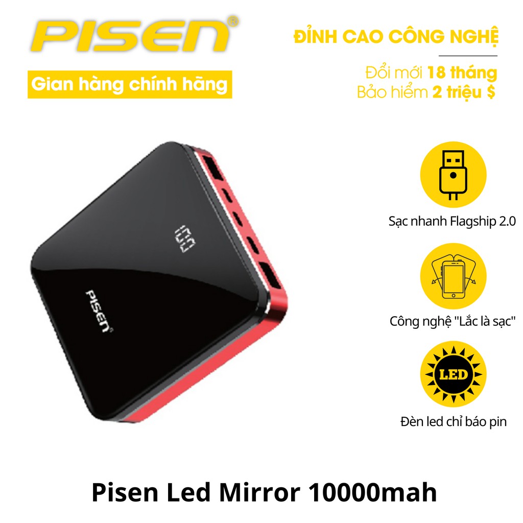 Sạc dự phòng Pisen Led Mirror 10000mah - Hàng chính hãng