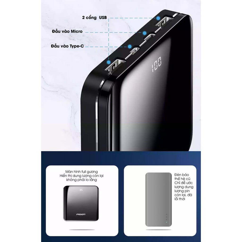 *** SẠC DỰ PHÒNG SÀNH ĐIỆU VỚI MẶT KÍNH VÀ KHUNG HỢP KIM NHÔM ***✅ Nhà sản xuất: PISEN GROUP, nhà phát minh ra sạc dự phòng đầu tiên trên thế giới với kinh nghiệm gần 20 năm nghiên cứu và phát triển các dòng sản phẩm sạc dự phòng, nguồn điện di động. Sản phẩm được nghiên cứu, phát triển, sản xuất và kiểm tra chất lượng nghiêm ngặt trước khi xuất xưởng, đảm bảo các tiêu chuẩn chất lượng nghiêm ngặt tại các thị trường khó tính như Mỹ, Nhật, EU, Dubai, Nga,…