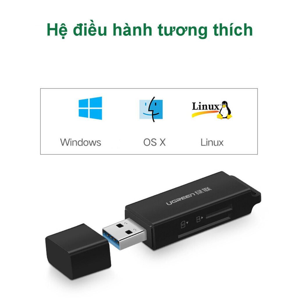 Đầu đọc thẻ nhớ SD/TF jack cắm USB 3.0 UGREEN CM104 - Hàng phân phối chính hãng - Bảo hành 18 tháng