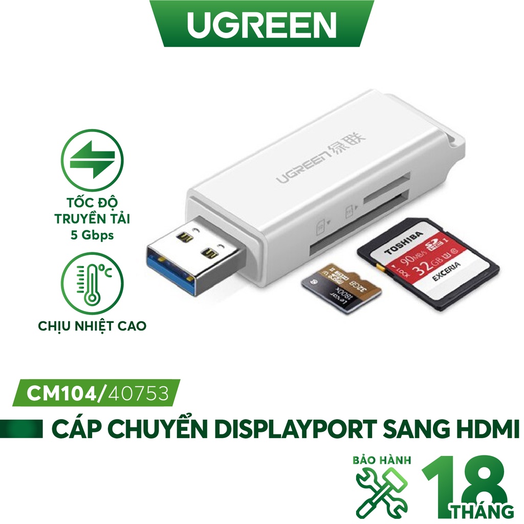 Giới thiệu Đầu đọc thẻ nhớ SD/TF jack cắm USB 3.0 UGREEN CM104 - Hàng phân phối chính hãng - Bảo hành 18 tháng