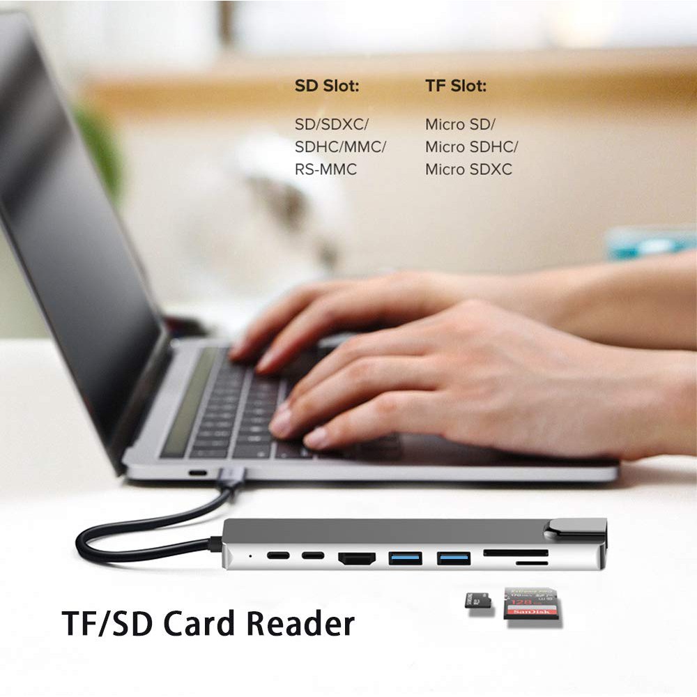 Hub USB C ra 11 cổng dùng cho Macbook Pro, Macbook Air kiêm đế tản nhiệt nhôm cao cấp