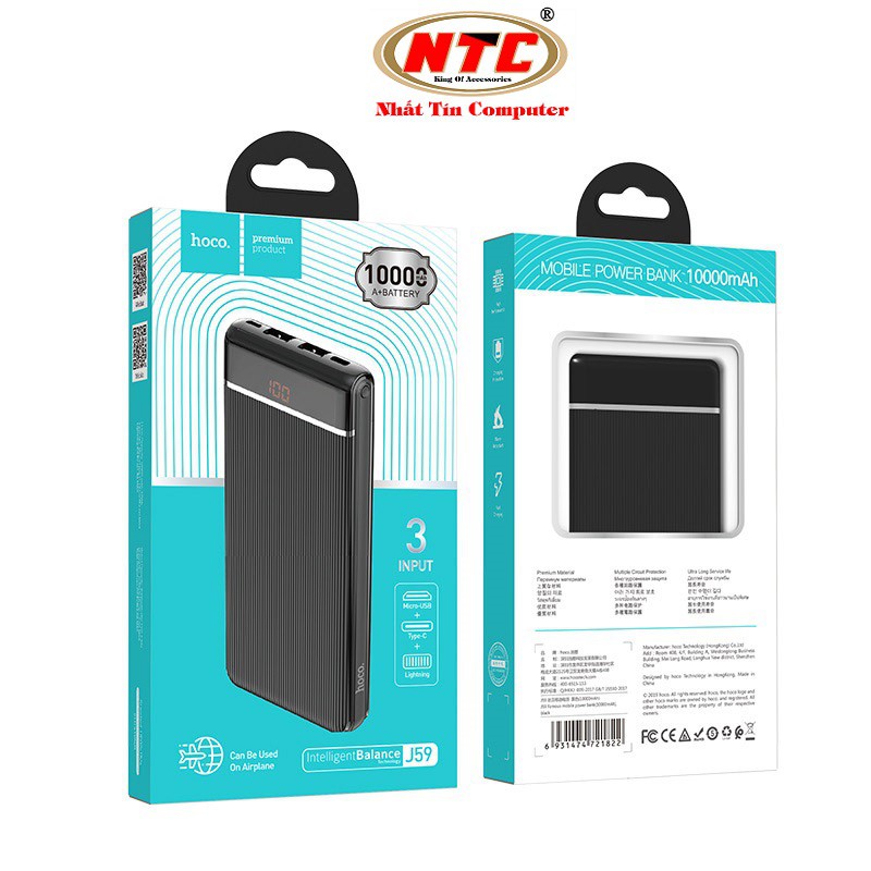 Pin sạc dự phòng Hoco J59 10000mAh Famous 3 cổng input, 2 cổng output max 2A - Hàng chính hãngThông số sản phẩm: