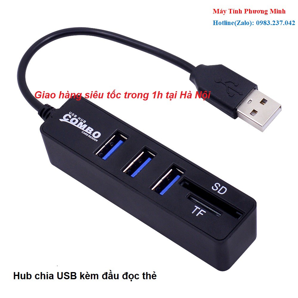 Máy tính & Laptop > Phụ Kiện Máy Tính > Bộ chia cổng USB & Đọc thẻ nhớ || Bộ Chia Hub USB 3 Cổng Kèm 2 Khe Đọc Thẻ Nhớ Micro và SDCòn hàng