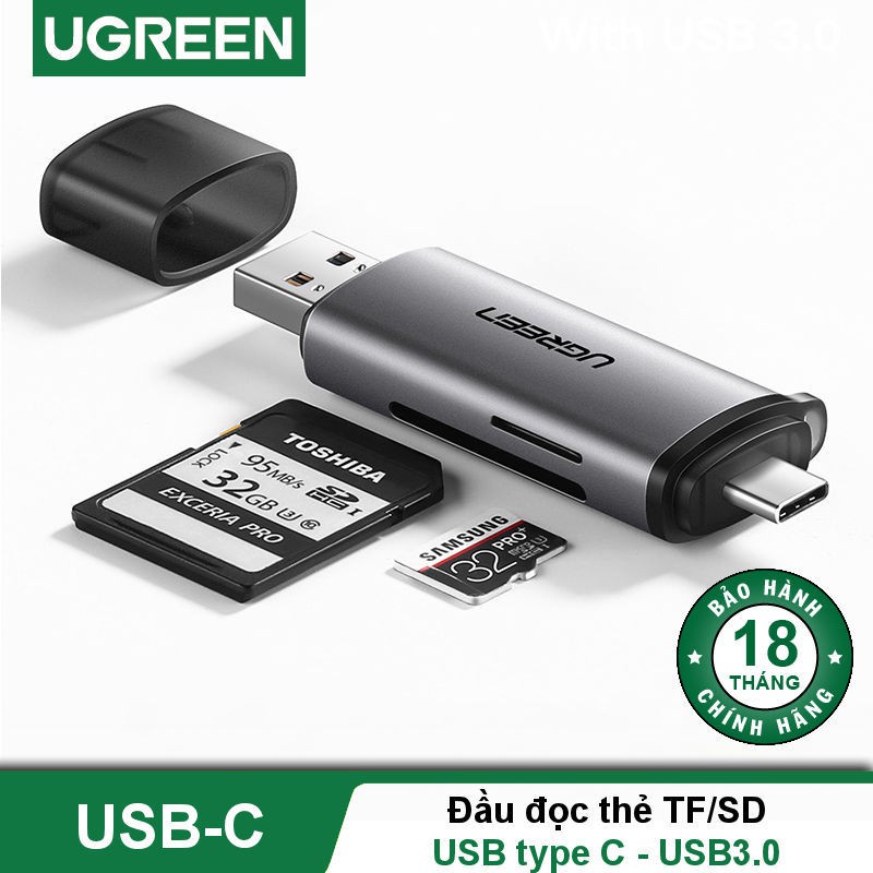 Máy tính & Laptop > Phụ Kiện Máy Tính > Bộ chia cổng USB & Đọc thẻ nhớ || Đầu đọc thẻ nhớ Type C & USB 3.0 Chính Hãng Ugreen 50706 CM184 SD/TFCòn hàng