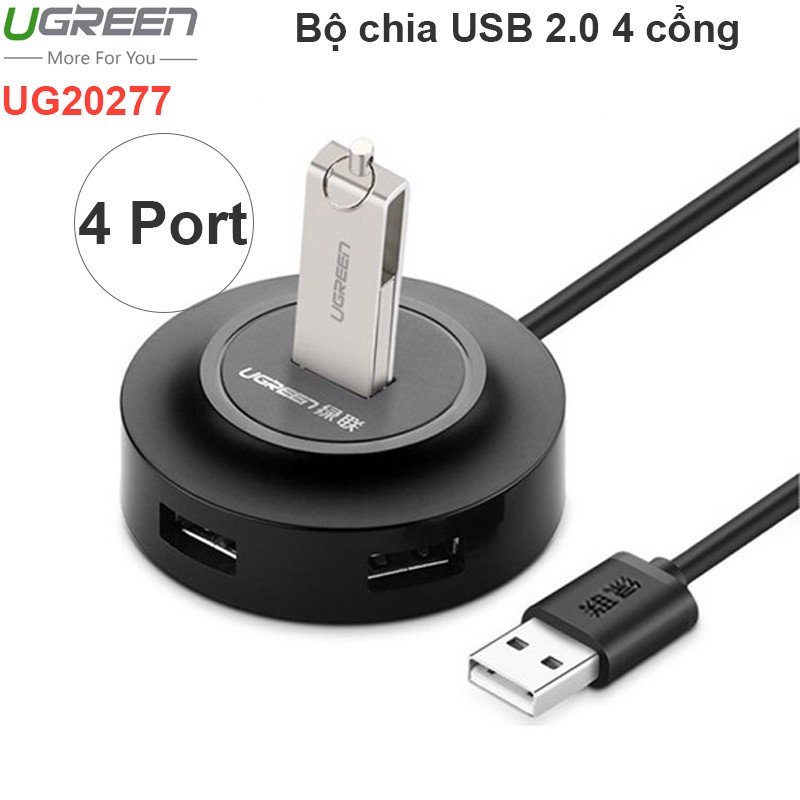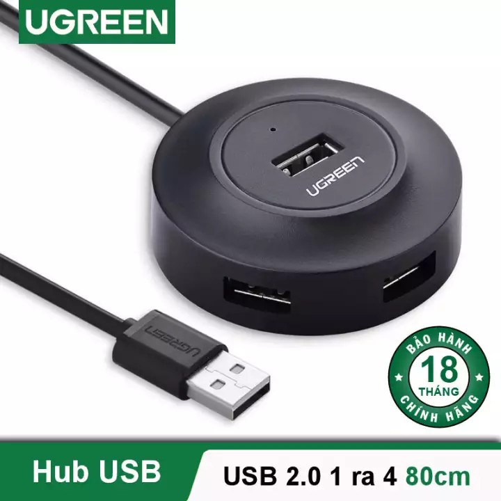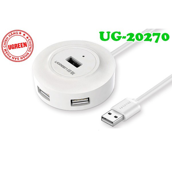 Hub USB 2.0 1 ra 4 cổng Cao cấp Ugreen 20270 20277 Chính hãng CR106 dây 80cm