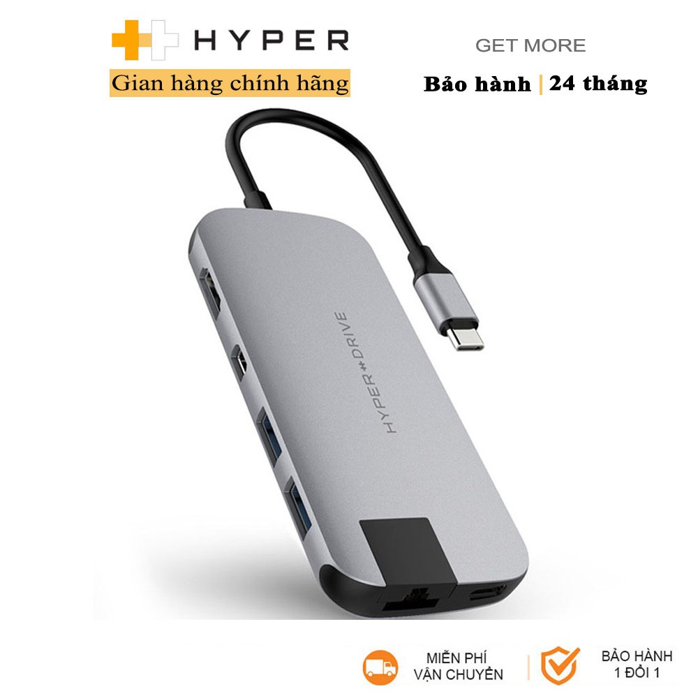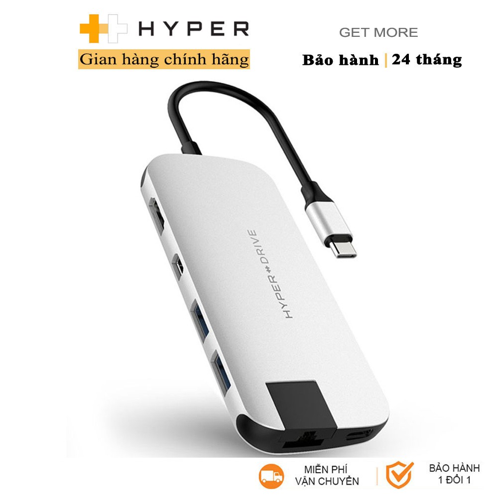 CỔNG CHUYỂN HYPERDRIVE SLIM 8 IN 1 USB-C HUB FOR MACBOOK, PC & DEVICESCổng chuyển Hyperdrive SLIM USB-C Multi Port Hub for MacBook, PC & Devices