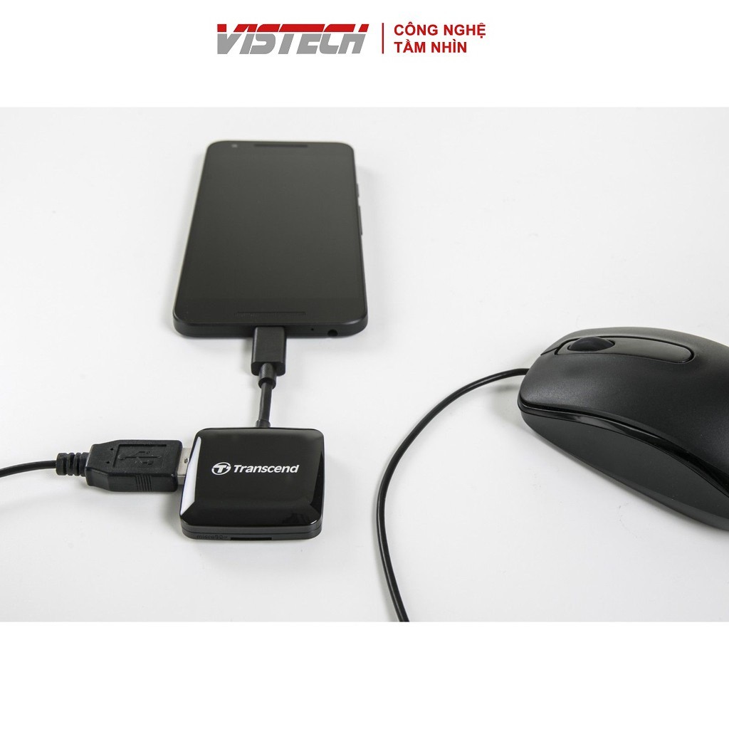 Được trang bị cổng USB loại A, đầu đọc thông minh RDC2 của Transcend cho phép kết nối đồng thời với ổ USB flash hoặc PC khi điện thoại thông minh hoặc máy tính bảng Android được kết nối với cáp Type-C. Bạn cũng có thể cắm chuột hoặc bàn phím để điều khiển thiết bị Android của mình.