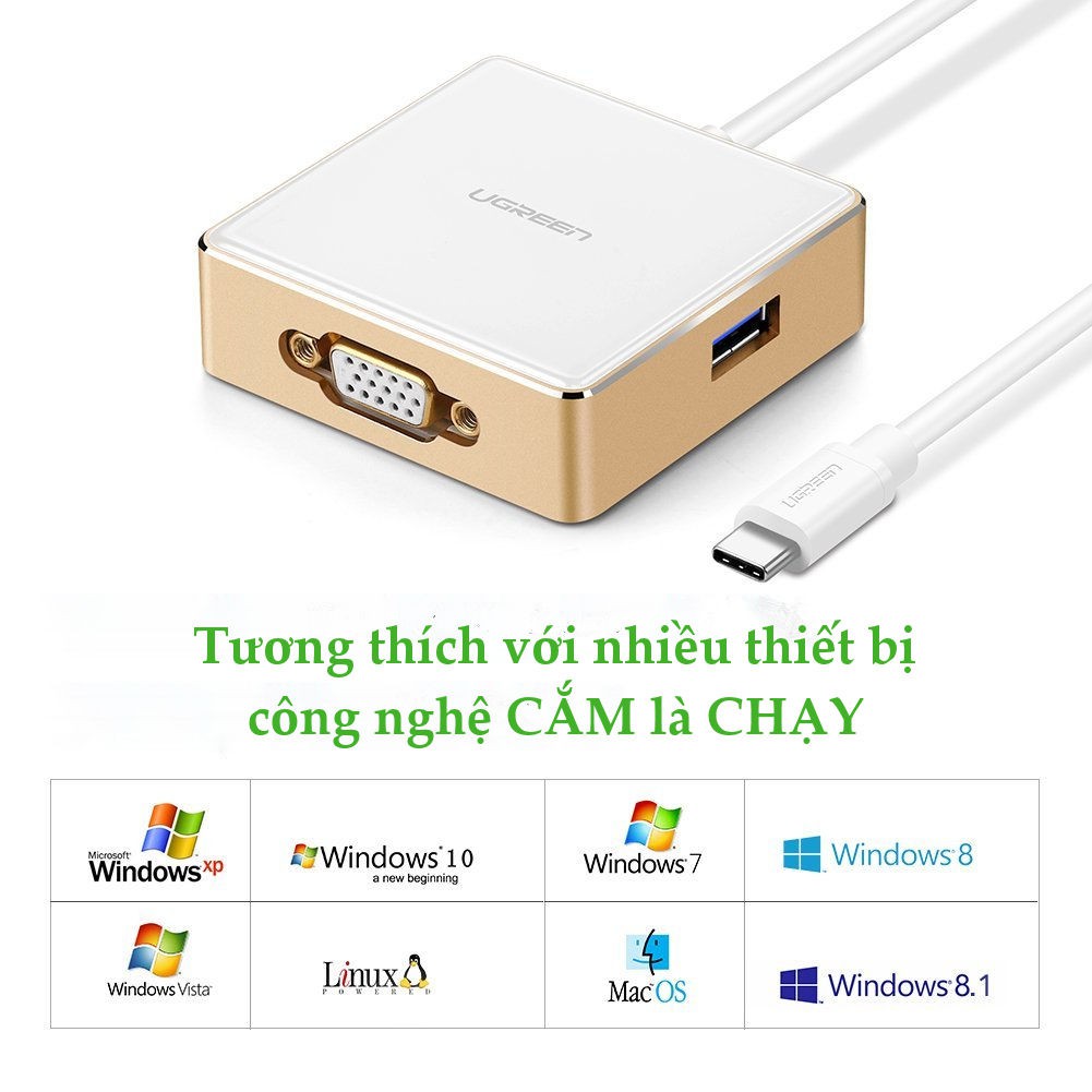 Bộ chuyển đổi USB type C sang VGA kèm Hub USB hỗ trợ cổng sạc Macbook UGREEN 30442