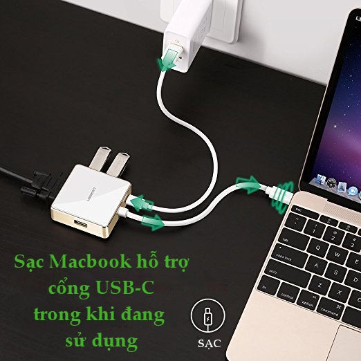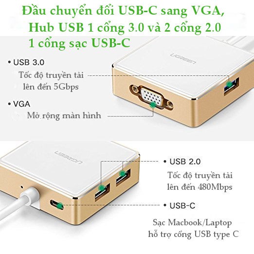 Giới thiệu Bộ chuyển đổi USB type C sang VGA kèm Hub USB hỗ trợ cổng sạc Macbook UGREEN 30442