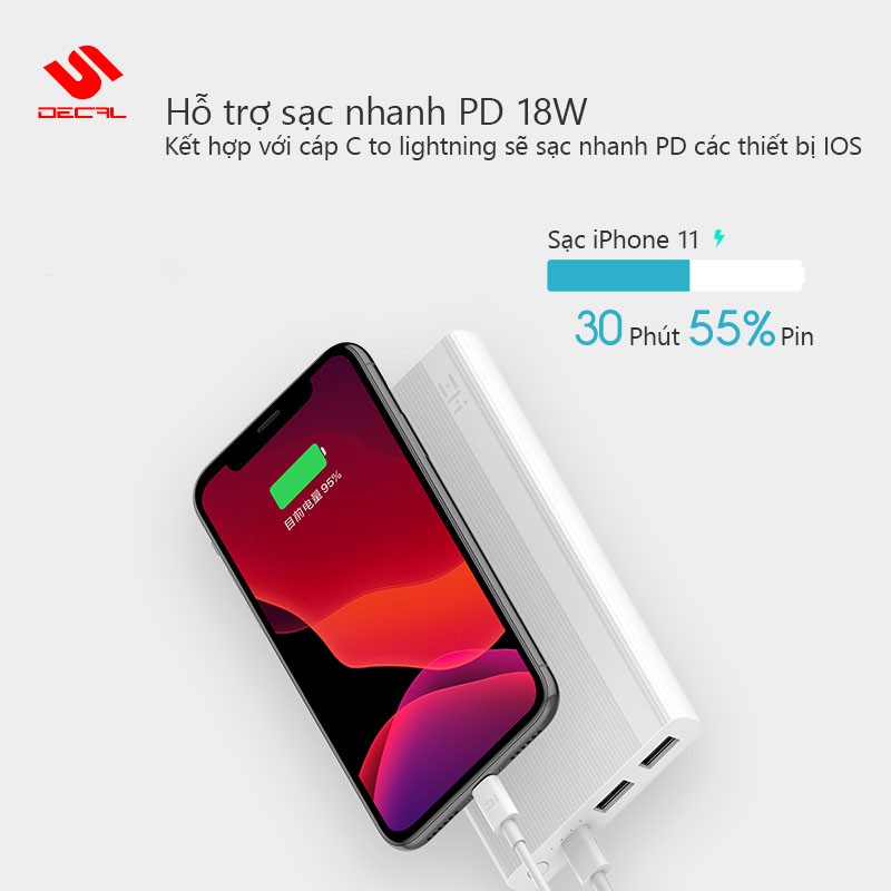 Điện Thoại & Phụ Kiện > Pin sạc dự phòng > 5000 - 10000mAh || Sạc dự phòng ZMI 10000mAh, Hỗ trợ sạc nhanh PD 18W và QC 3.0 Model JD810Còn hàng