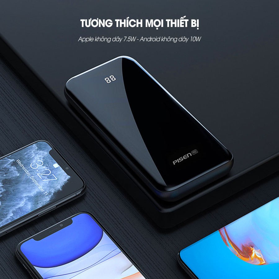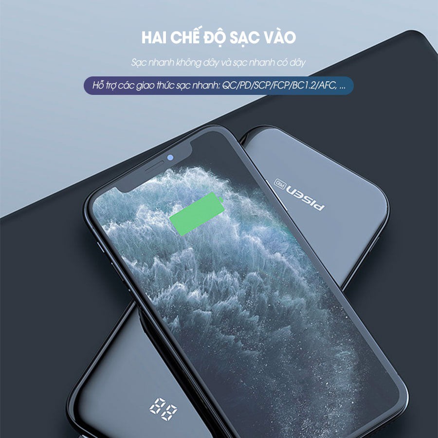 Điện Thoại & Phụ Kiện > Pin sạc dự phòng > 5000 - 10000mAh || Sạc dự phòng pisen không dây Pro Wireless Fast 10000mAh , 22.5W - Hàng chính hãngCòn hàng