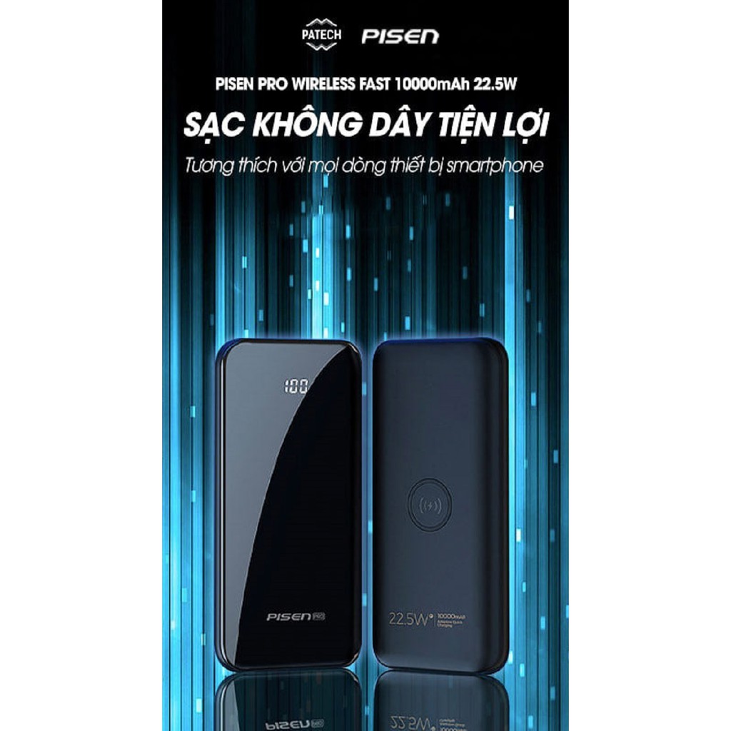 Giới thiệu Sạc dự phòng pisen không dây Pro Wireless Fast 10000mAh , 22.5W - Hàng chính hãng
