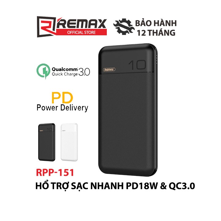 Pin dự phòng Remax RPP151 10000mAh Boree Series sạc nhanh iPhone PD 18W và QC 3.0