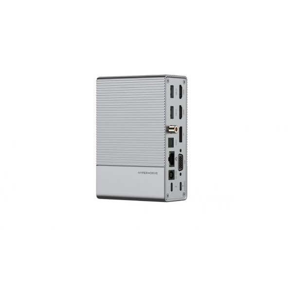 -HyperDrive GEN2 18 cổng USB-C Hub là một Trung tâm USB-C thế hệ tiếp theo có thể biến một cổng USB-C duy nhất trên thiết bị chủ / máy tính thành 18 cổng với nguồn/tốc độ cao như HDMI 4K60Hz x 2, DP 4K60Hz, VGA, USB -A 10Gbps x 2, USB-C 10Gbps, USB-A 2.0 x 2, USB-A 3.0, Gigabit Ethernet, Coxial SPDIF, Cáp quang Toslink, Giắc Audio 3,5 mm TRRS, UHS-II MicroSD / SD 4.0 312MB / s, Nguồn điện DC 180W và USB-C 100W.