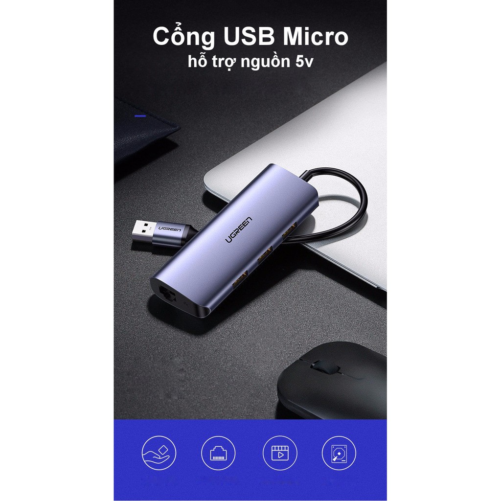Bộ chia USB 3.0 ra 3 cổng USB 3.0 + Lan Gigabit 1000Mbps Ugreen 60719