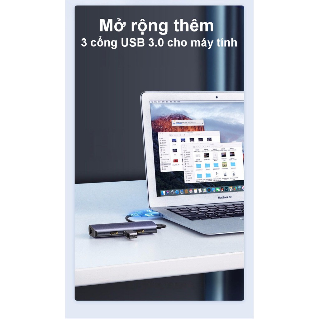 Giới thiệu Bộ chia USB 3.0 ra 3 cổng USB 3.0 + Lan Gigabit 1000Mbps Ugreen 60719