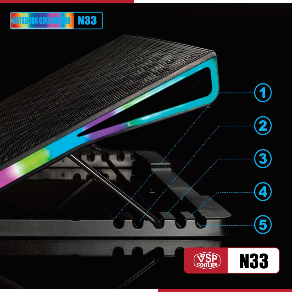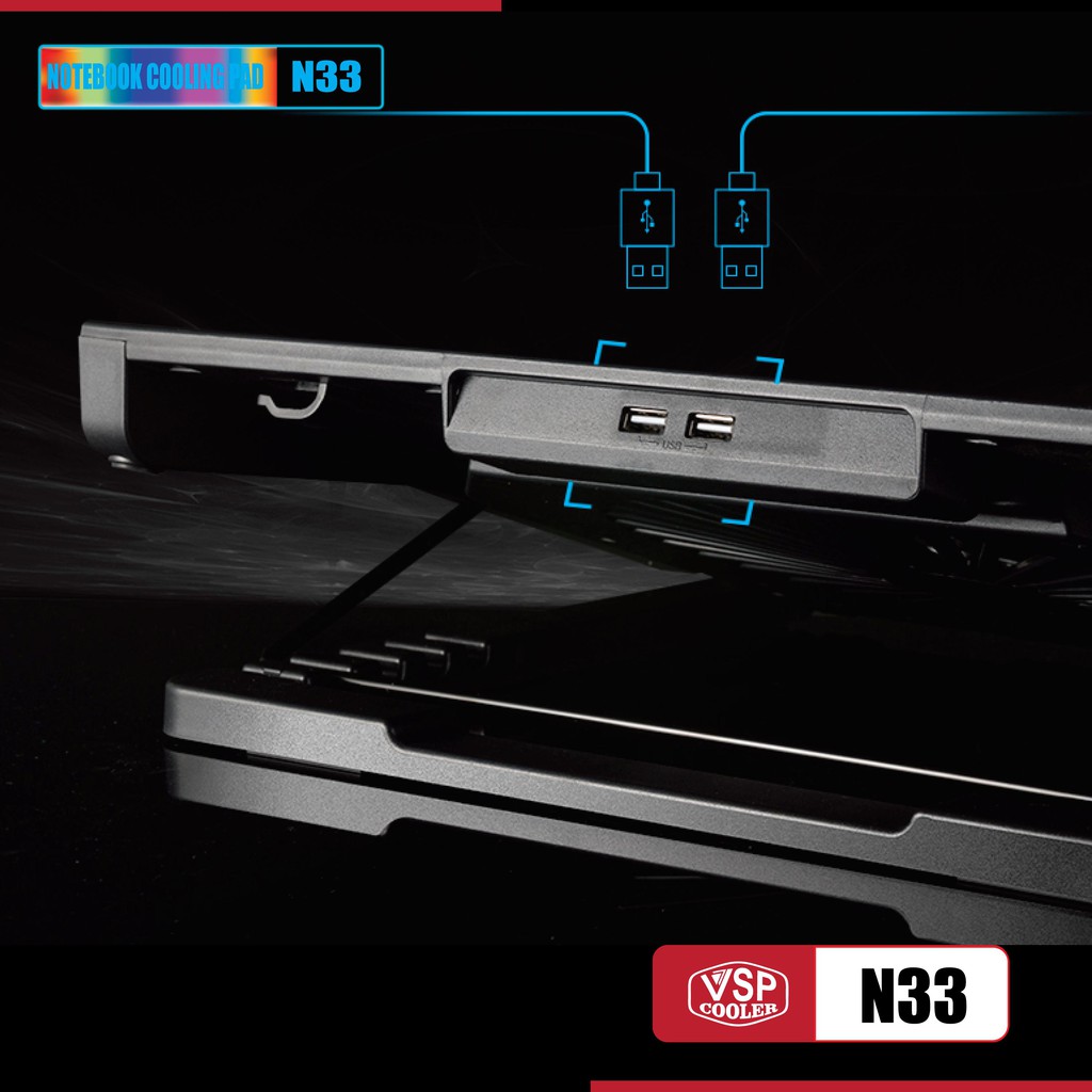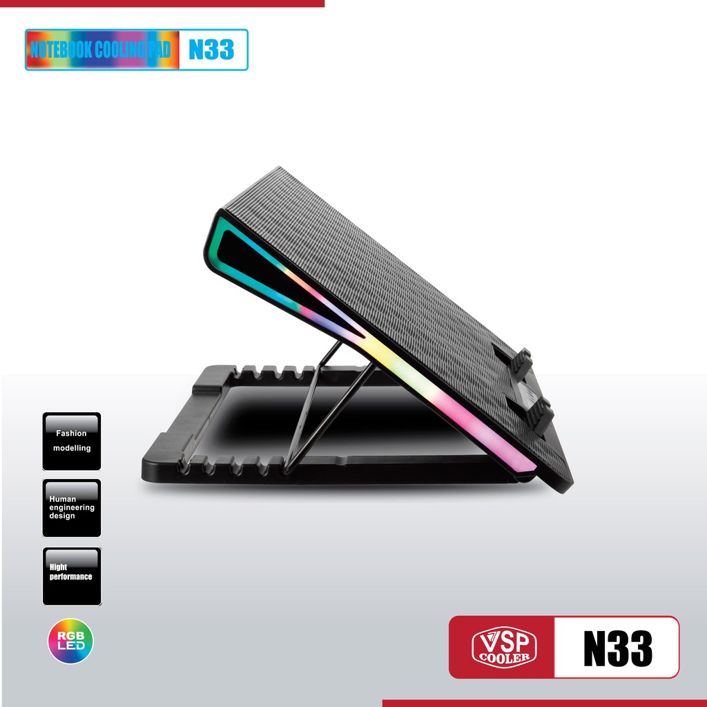 Đế tản nhiệt VSP COOLER N33 cho laptop từ 10" đến 15.6" Led RGB (Đen)♦ Thông Số Kỹ Thuật