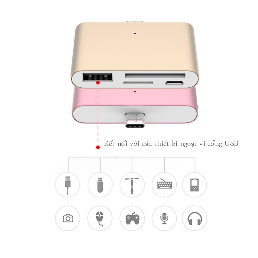 Chức năng : Dùng đọc, coppy dữ liệu từ thiết bị lưu trữ dữ liệu thẻ nhớ,USB lên các thiết bị điện thoại, máy tính bảng, máy tính PC , laptop có cổng Type c phổ biến hiện nay .