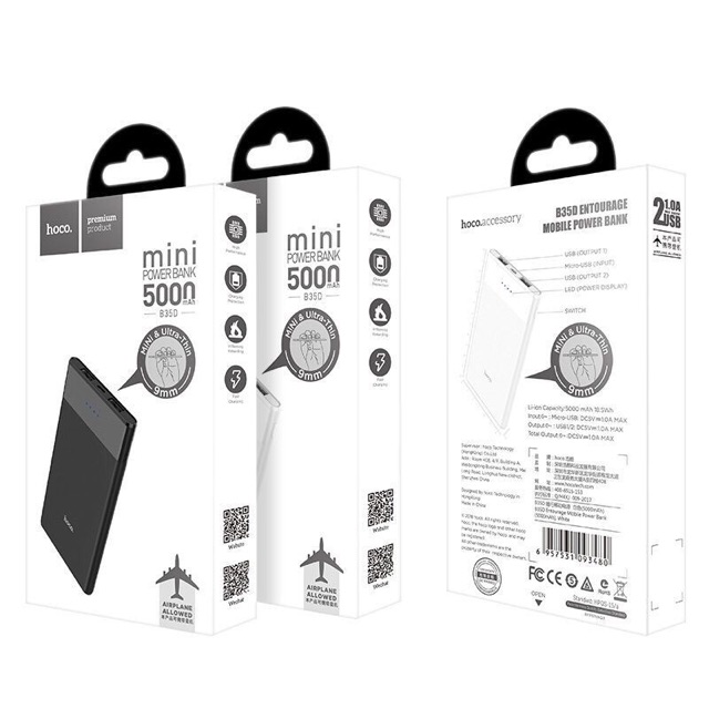 Điện Thoại & Phụ Kiện > Pin sạc dự phòng >< 5000mAh || Pin dự phòng siêu mỏng 5000mAh Hoco B35D hàng chính hãngCòn hàng
