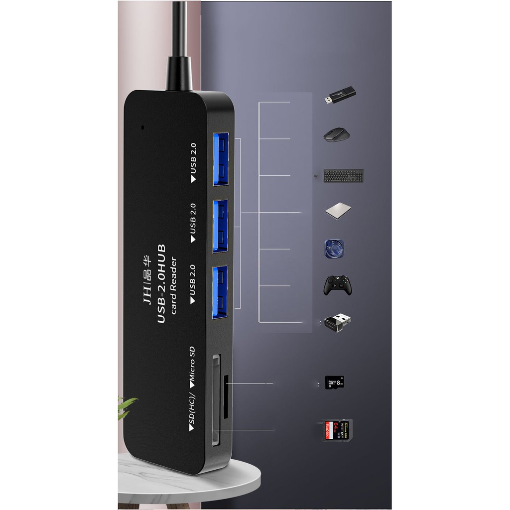 Máy tính & Laptop > Phụ Kiện Máy Tính > Bộ chia cổng USB & Đọc thẻ nhớ || Hub usb ra 3 cổng usb, thẻ TF và SD - Jinghua Z300Còn hàng
