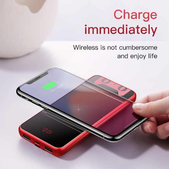 Pin dự phòng Sạc Không Dây Qi Power Bank LCD Dual USB 10.000mAh Baseus