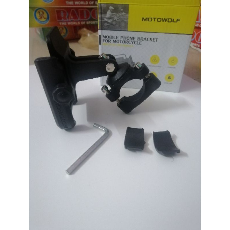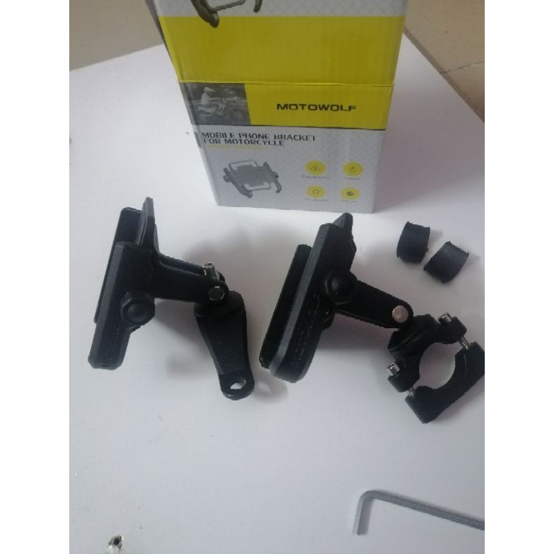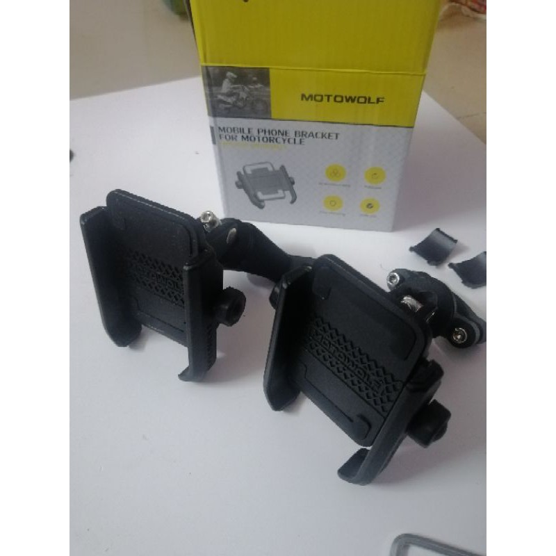 Sản phẩm kẹp giá đỡ diện thoại trên xe máy MOTOWOLF là 1 trong những giá đỡ chắc chắn nhất hiện nay .có 2 loại : Kẹp trên chân gường ,và kẹp trên giđông.